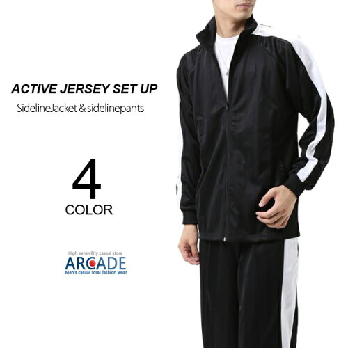 光沢のある機能性素材を使ったジャージ上下セットです。